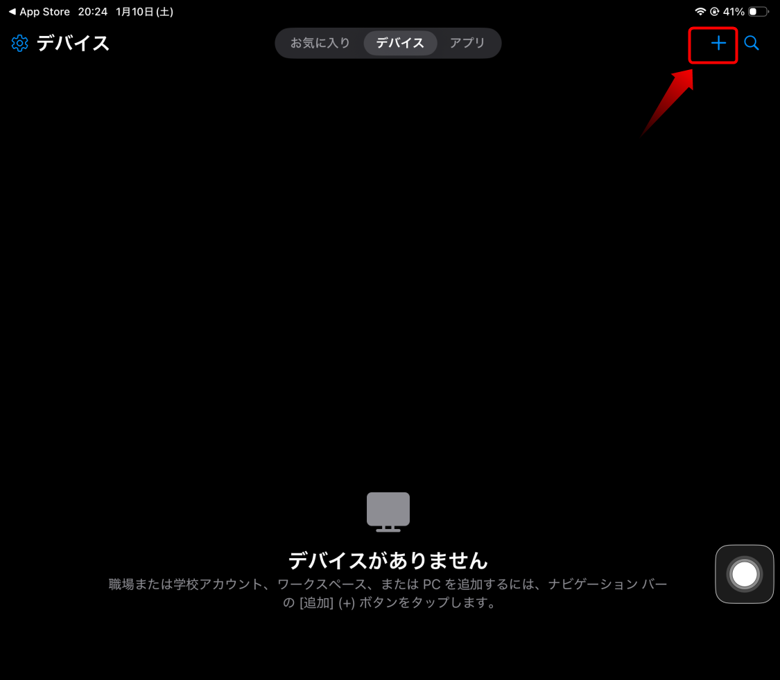 Windows 機を追加するために、右上の「+」ボタンを押す。