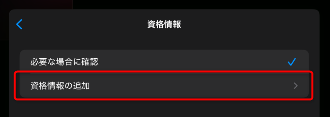 次に「資格情報」をタップ。