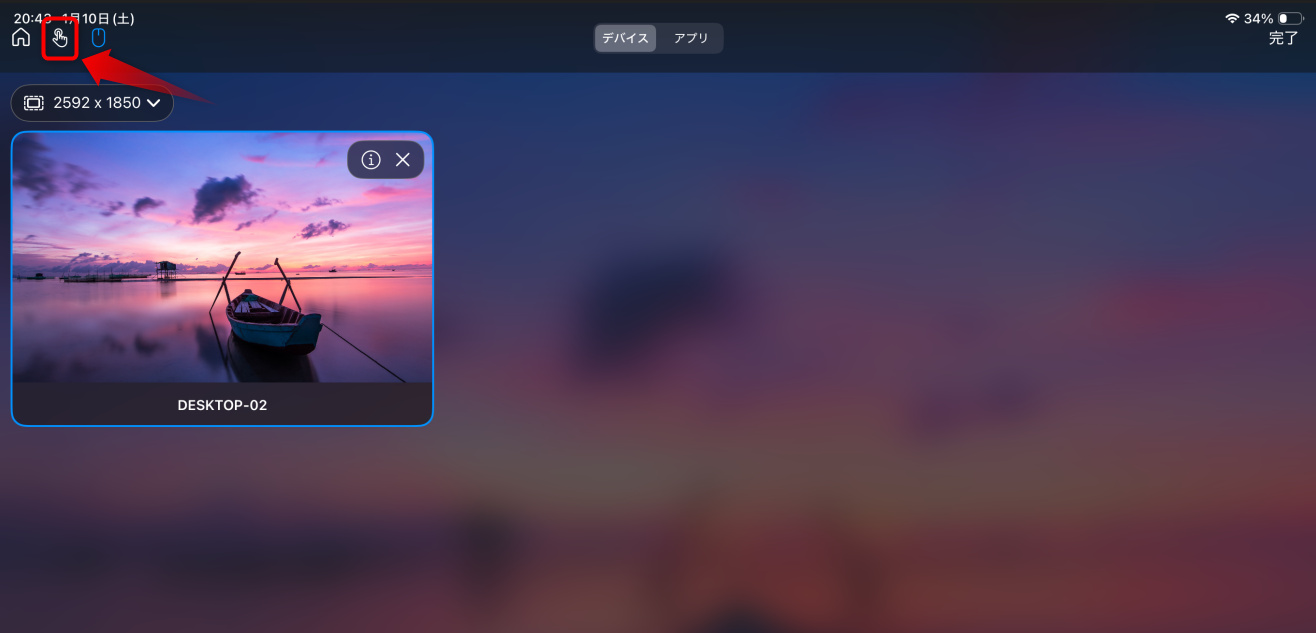 左上のところを見るとマウス操作モードになっているので、赤枠で囲ったタッチ操作モードをタップしてください。